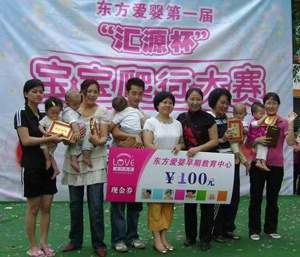 由匯源集團(tuán)獨(dú)家贊助的、東方愛嬰早教中心主辦的“匯源杯”寶寶爬行大賽于2008年11月2日上午在廣晟廣場舉行。此次活動(dòng)報(bào)名踴躍,共有108名出生5個(gè)月至12個(gè)月的寶寶報(bào)名參賽。賽場熱鬧非凡,笑聲掌聲不斷,吸引了不少未報(bào)名參賽寶寶的家長前來觀看,普遍稱贊活動(dòng)有特色,能讓小寶寶增長見識,最主要的是能加深親子關(guān)系,喚起家長們重視早教的意識。經(jīng)過分組賽、決賽,最終決出一等獎(jiǎng)3名、二等獎(jiǎng)6名、三等獎(jiǎng)9名。