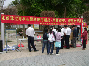 2008年3月29日,匯源珠寶公司組織志愿隊到連平縣城開展義務(wù)服務(wù)活動,受到當(dāng)?shù)鼐用竦臒崃覛g迎。