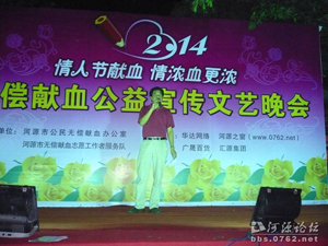 2月14日晚,河源市獻(xiàn)血辦、河源市中心血站、河源市無償獻(xiàn)血志愿工作者服務(wù)隊(duì)在廣晟廣場(chǎng)舉行“情人節(jié)獻(xiàn)血、情濃血更濃”無償獻(xiàn)血公益宣傳文藝晚會(huì)。匯源集團(tuán)給予了協(xié)助,提供了150份禮品。