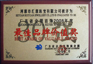 2009年2月25日,在廣東省金銀首飾商會舉行的年會上,河源市匯源珠寶有限公司被評為廣東省金銀首飾2008年度“最佳品牌價值獎”稱號。