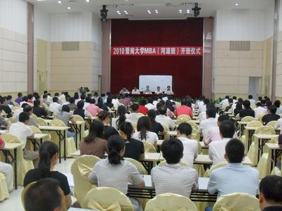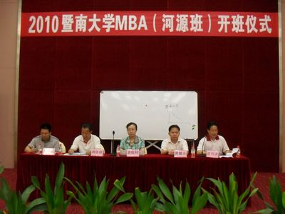2010年6月11日,暨南大學(xué)(河源)MBA班在匯源集團(tuán)多功能廳舉行開班儀式。市委龔佐林副書記、市人大黃晨光副主任、市政協(xié)具鐵祥副主席參加了開班儀式。據(jù)悉,此次MBA班226多名學(xué)員,來自河源市、縣非公企業(yè)、國有企業(yè)、金融系統(tǒng)。