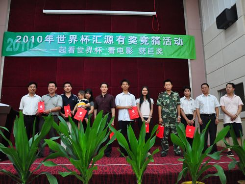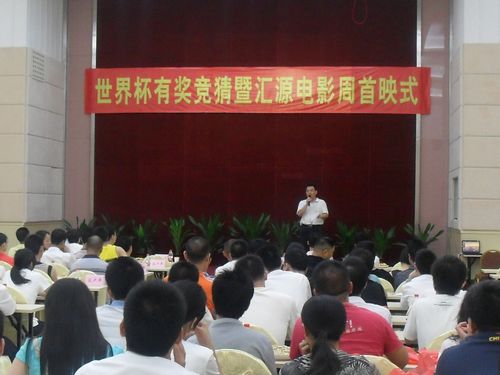 為慶祝2010年世界杯足球賽,活躍員工業(yè)余文化生活,匯源集團6月23日晚上7點-10點,在多功能廳舉行了“世界杯足球賽有獎競猜暨匯源電影周首映式”活動,公司客戶、員工及員工家屬150多人參加了這次活動,公司董事長賴運宏、副董事長劉越香及全體副總經(jīng)理,與大家一起觀看了電影,并參與了本次世界杯冠軍隊競猜活動。